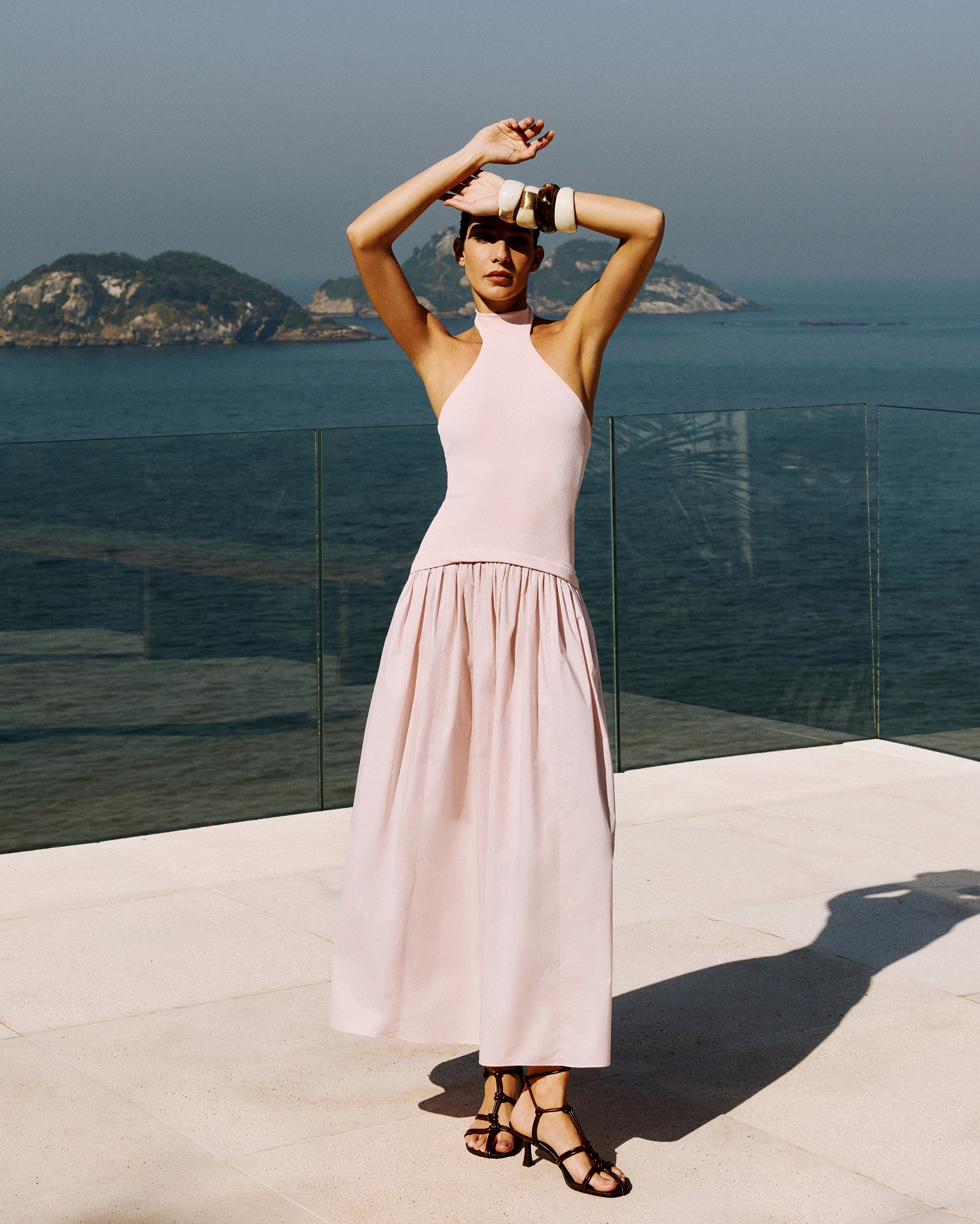 Vestido malha + tricoline com botão.